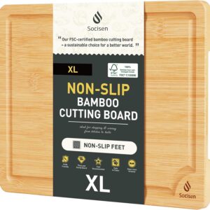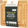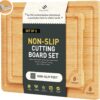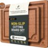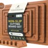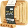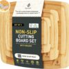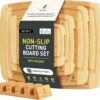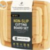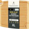 The bamboo’s natural fibrous texture is gentle on knives, helping maintain blade sharpness longer than hard plastic or glass boards. It’s knife-friendly while staying tough.