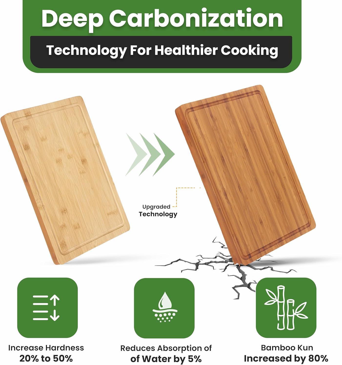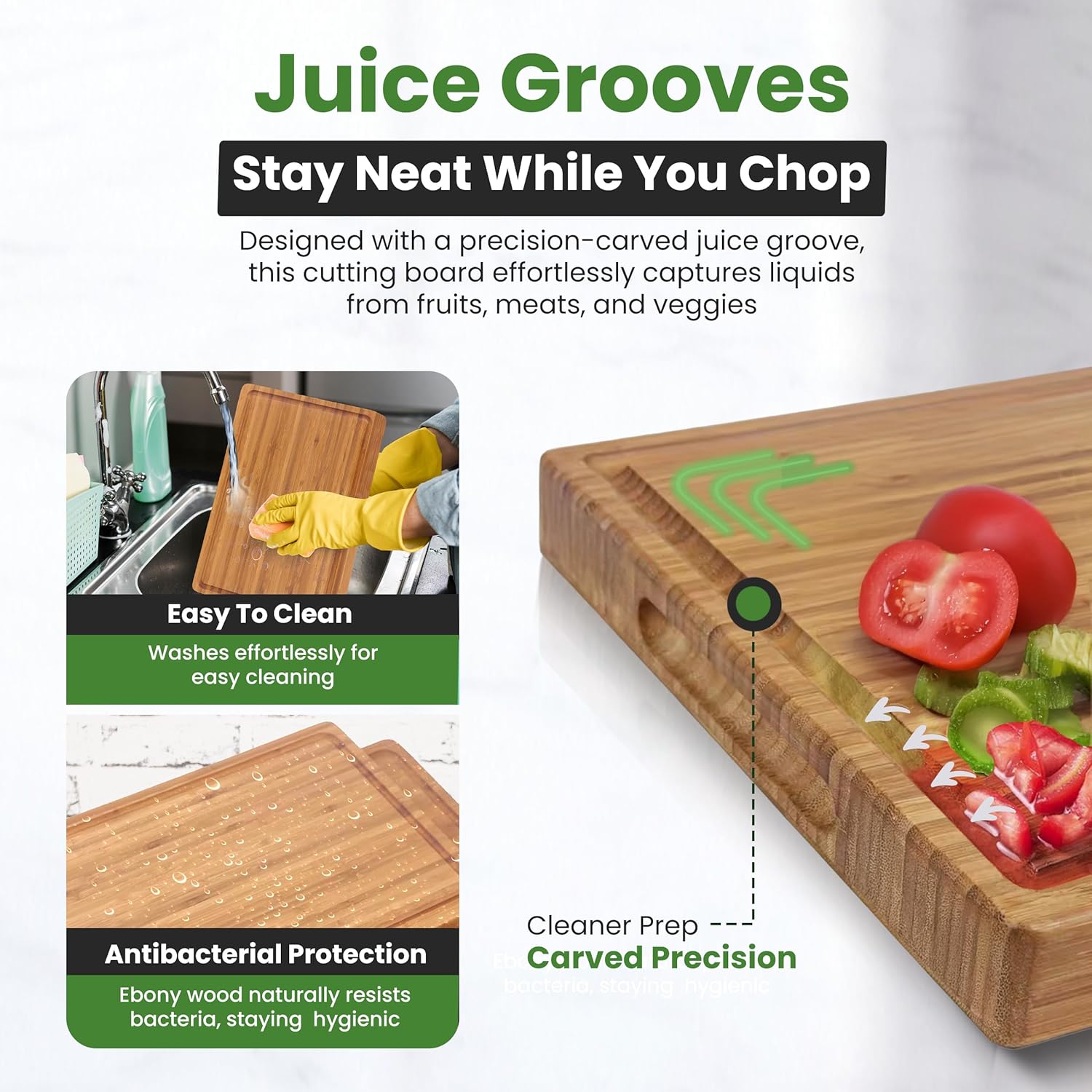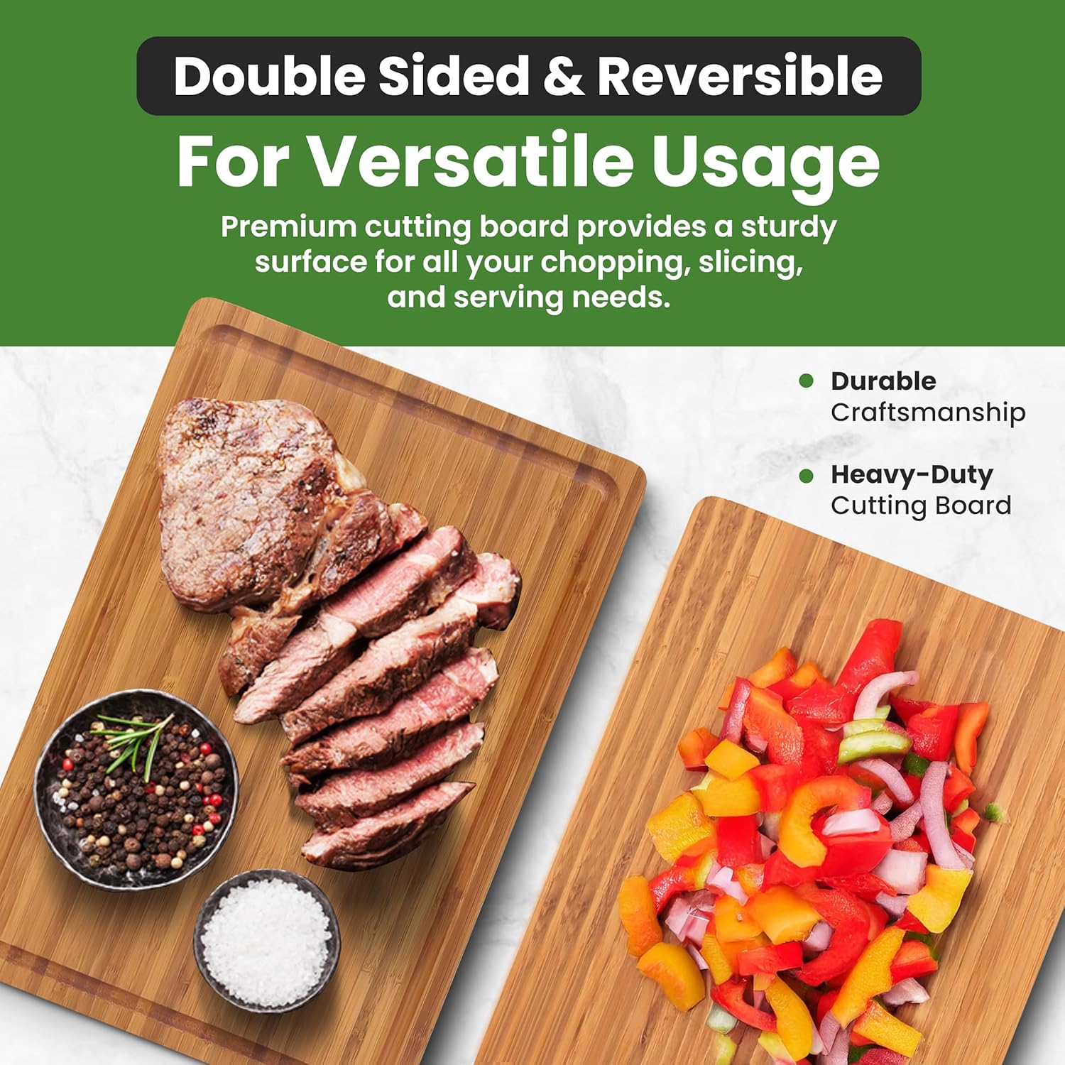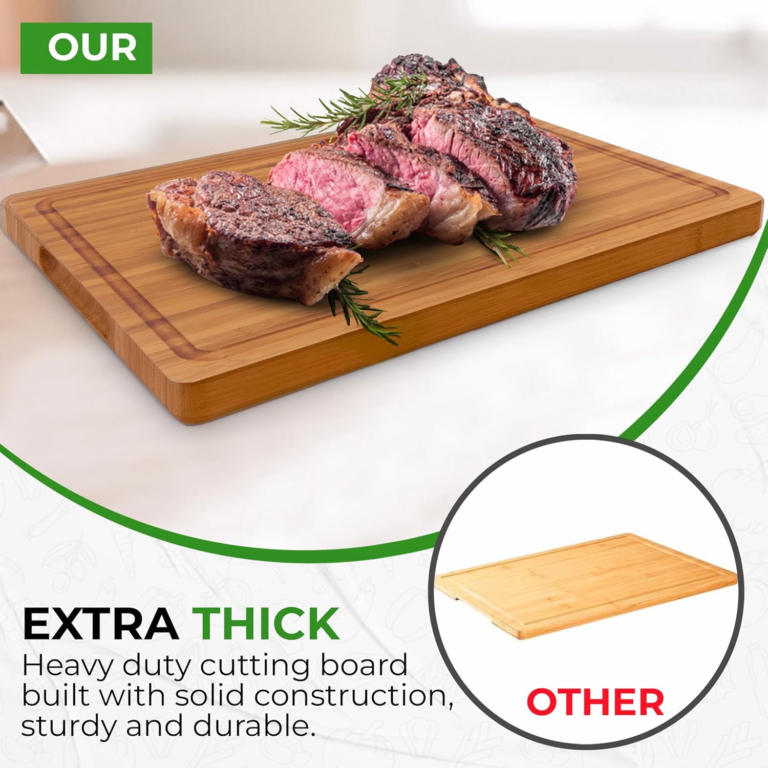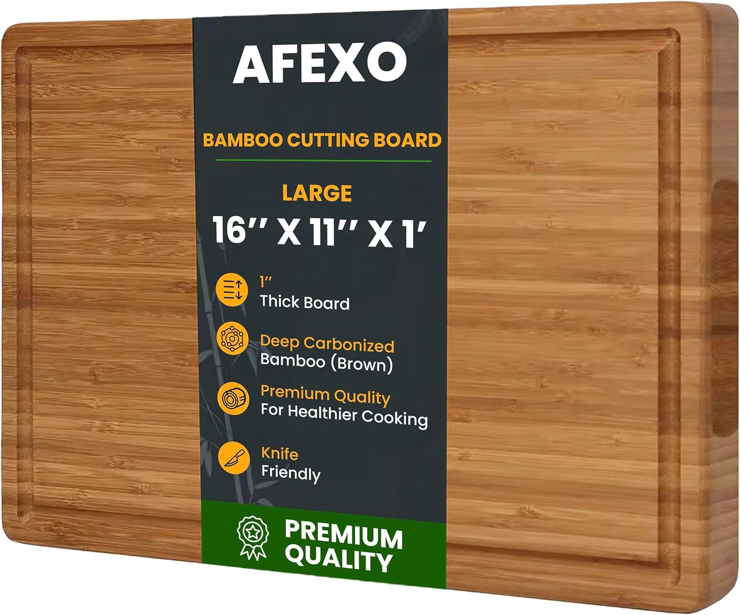 AFEXO Bamboo cutting board for kitchen. 1″ Thick – Wooden cutting board with deep juice groove and side handles. Ideal Charcuterie & Chopping for Meat, Vegetables. Butcher block, Brown (16″x11″x1″)