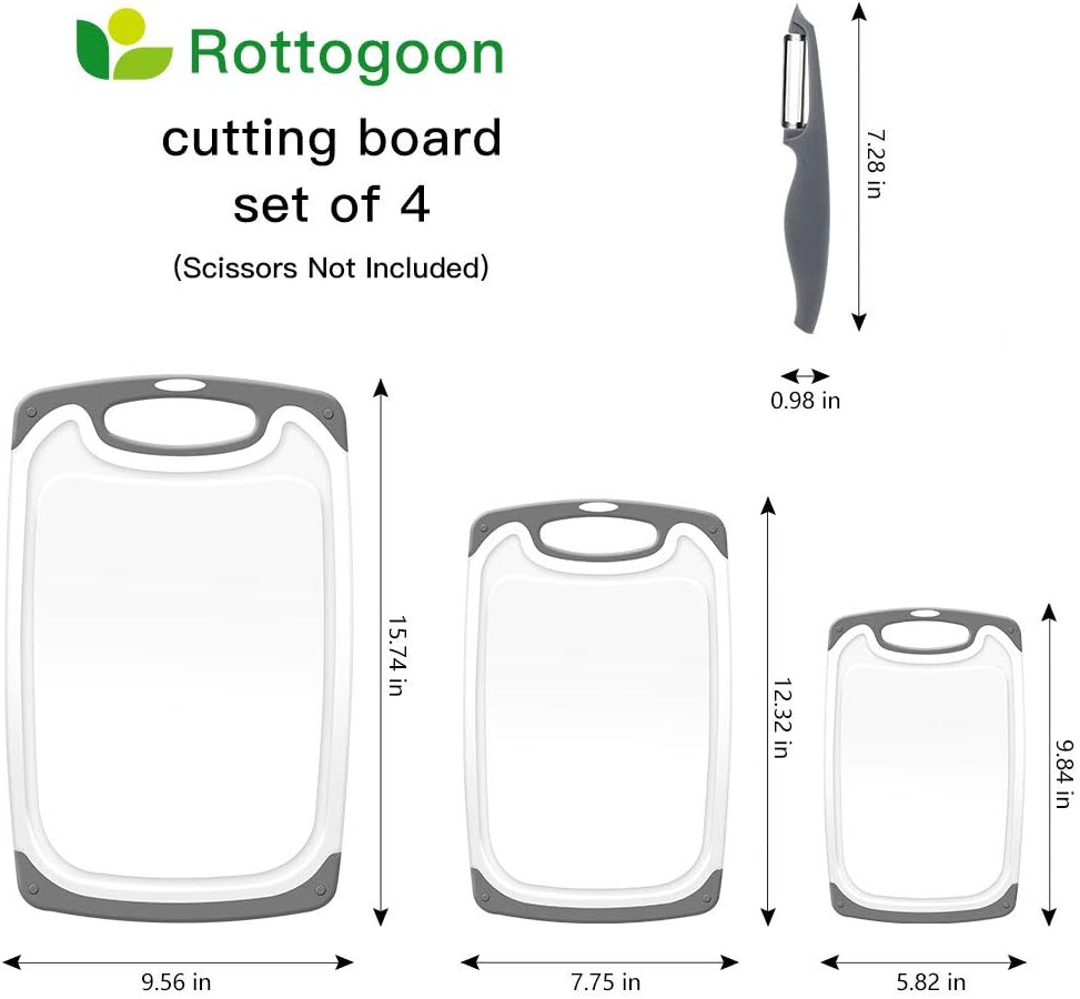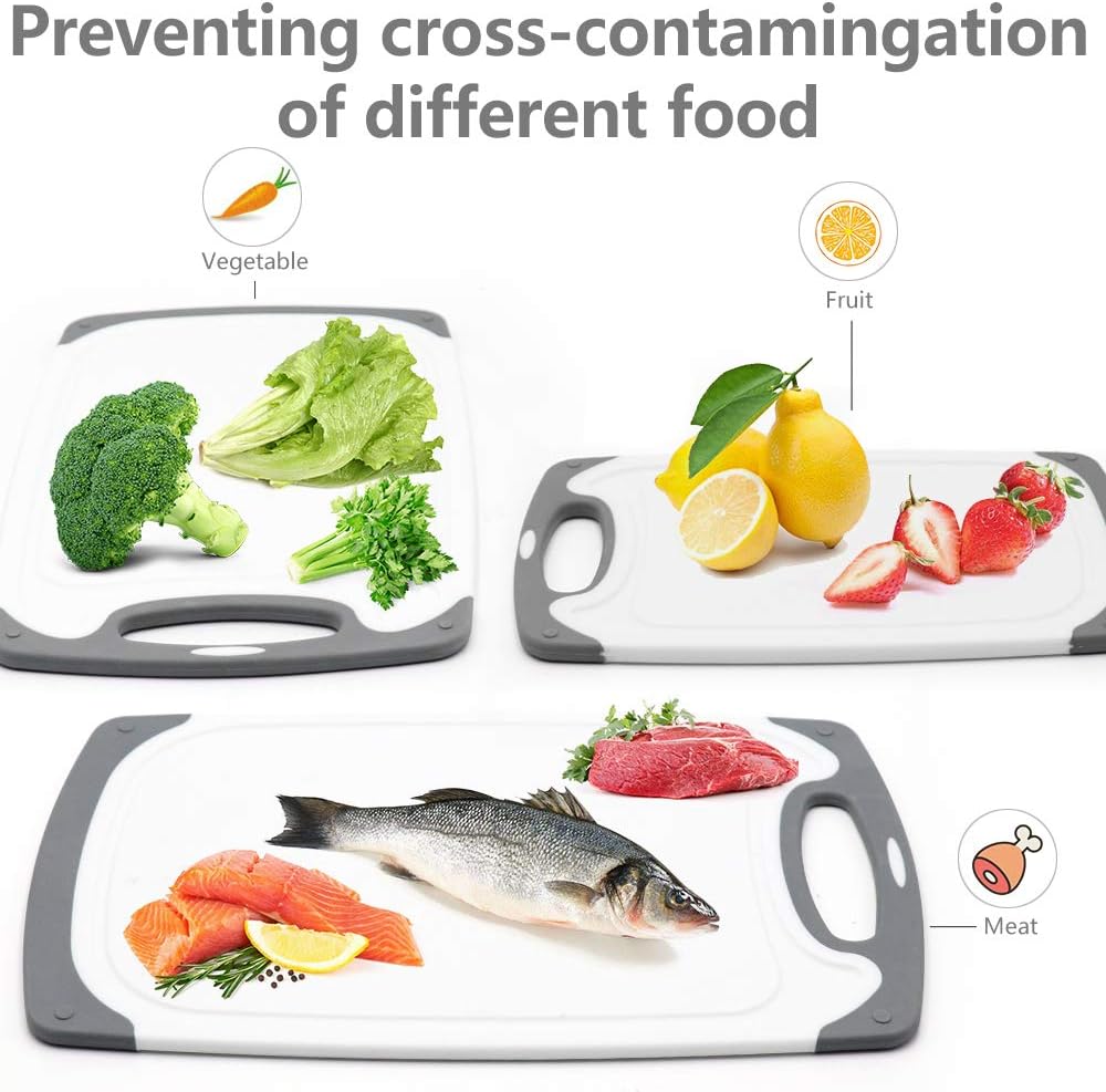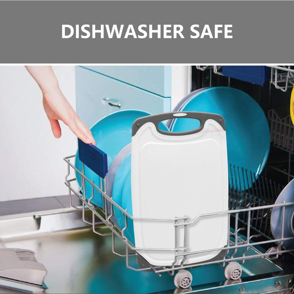Cutting Boards for Kitchen, Plastic Chopping Board Set of 4 with Non-Slip Feet and Deep Drip Juice Groove, Easy Grip Handle, Dishwasher Safe, gray quantity