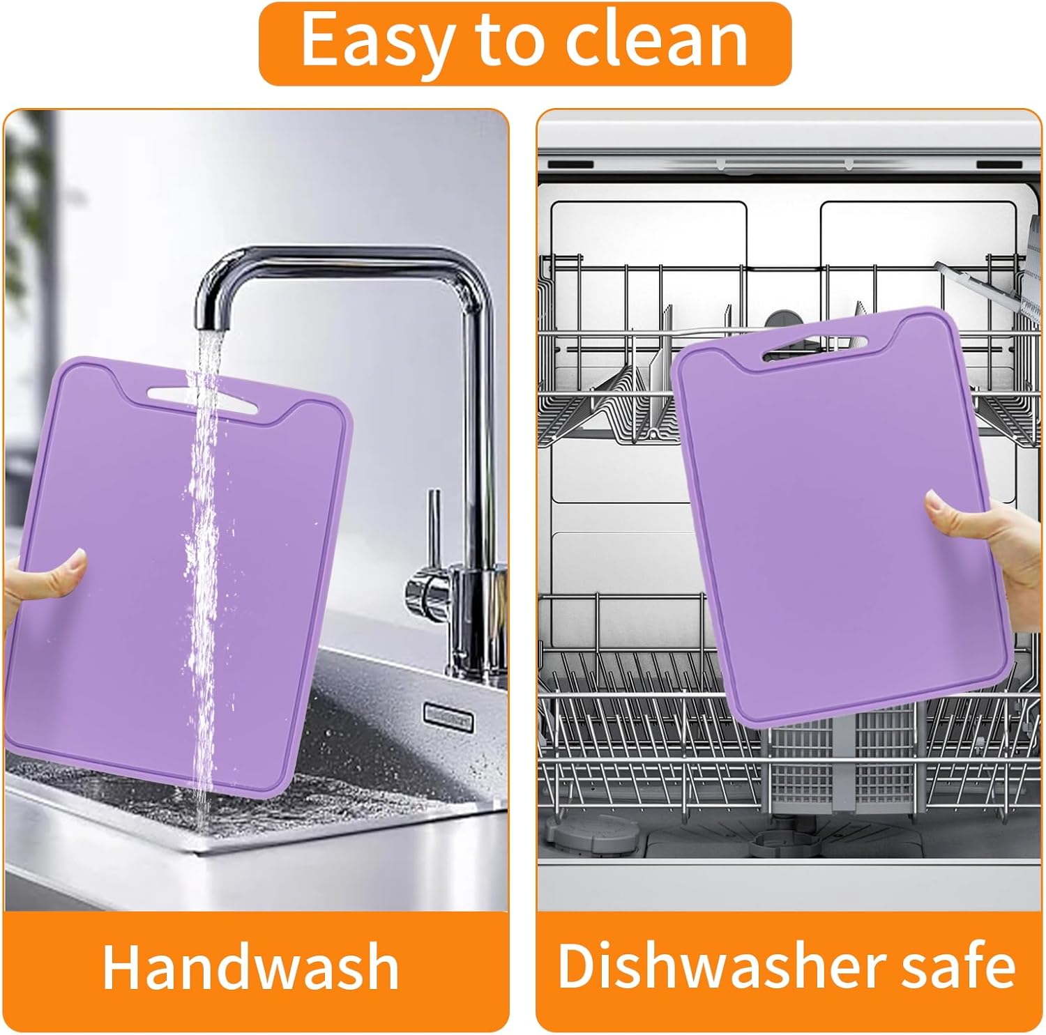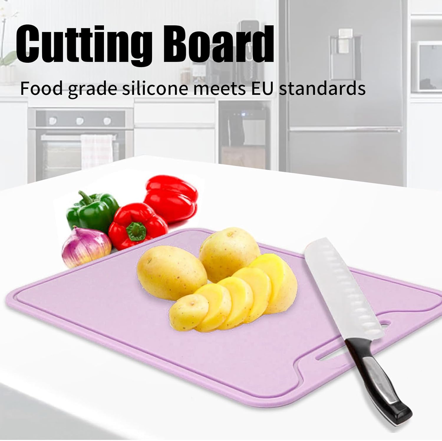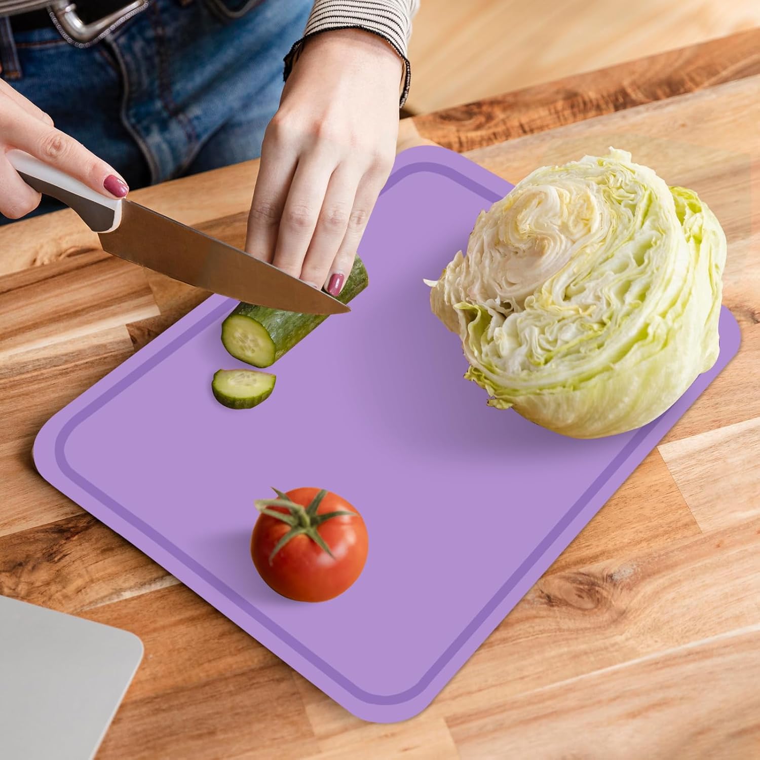 JUSTHERE Silicone Cutting Boards for Kitchen 11.8”x 8.6”, BPA Free Flexible Cutting Board Cutting Mat for Meat, Vegetables and Fruit, Cutting Boards for Kitchen Dishwasher Safe (Purple)