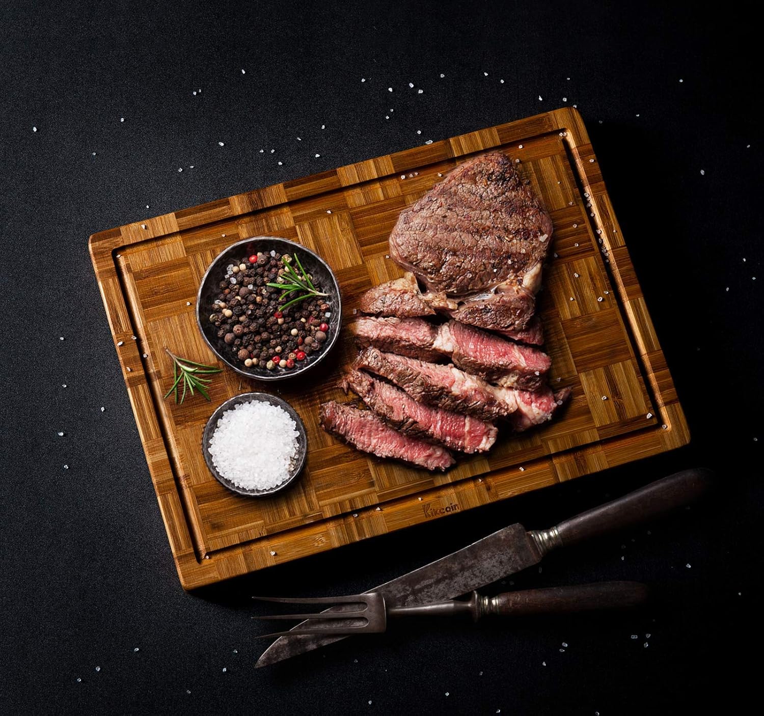 Kikcoin Extra Large Bamboo Cutting Boards, (Set of 3) Chopping Boards with Juice Groove Bamboo Wood Cutting Board Set Butcher Block for Kitchen, End Grain Serving Tray