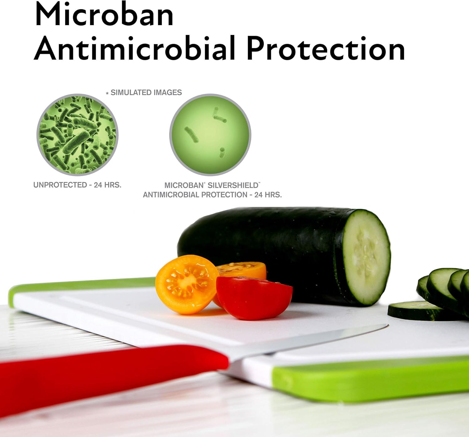 Neoflam 2 Piece Plastic Cutting Board Set, Microban Protection, Stain & Odor Free, Extra Large, BPA Free, Juice Groove, Non Slip, Dishwasher Safe, Easy Grip Handle, White Green