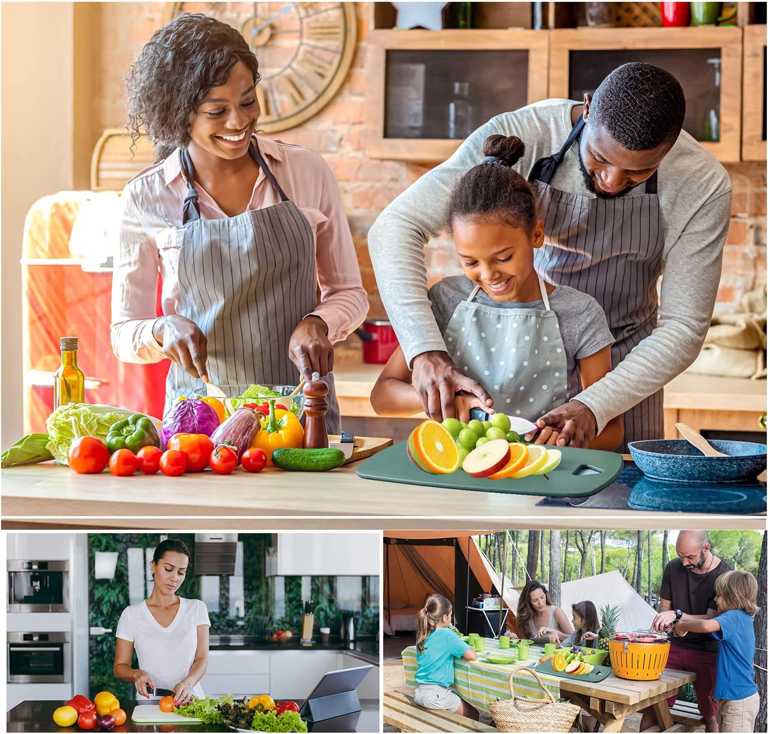Plastic Cutting Board Set of 3, Cutting Boards for Kitchen,Thick Chopping Boards for Meat, Veggies, Fruits, with Easy Grip Handle,Dishwasher Saf,Suitable for outdoor camping, RV. (green)