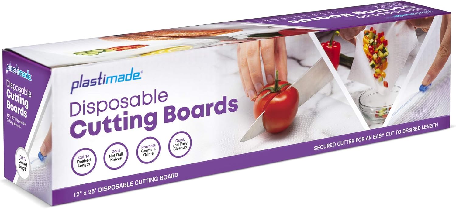 Plastimade Disposable Plastic Cutting Board | Easy To Use Flexible Cutting Board Sheets With Built In Sliding Cutter | For Thanksgiving Cooking Prep, Commercial, Traveling, Tailgating, Camping,