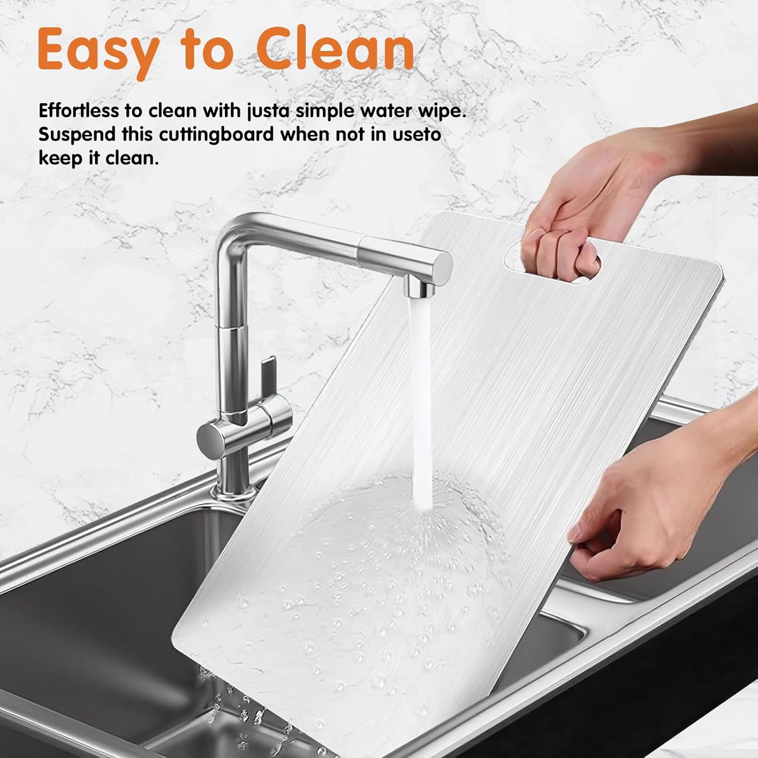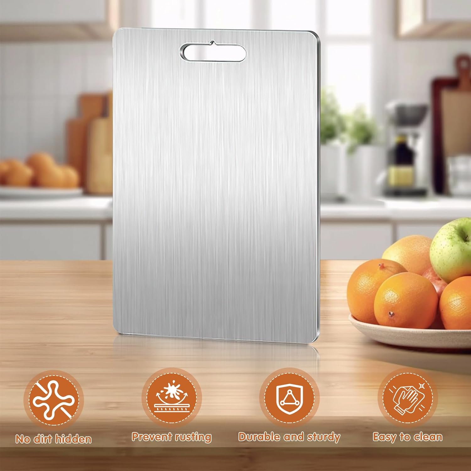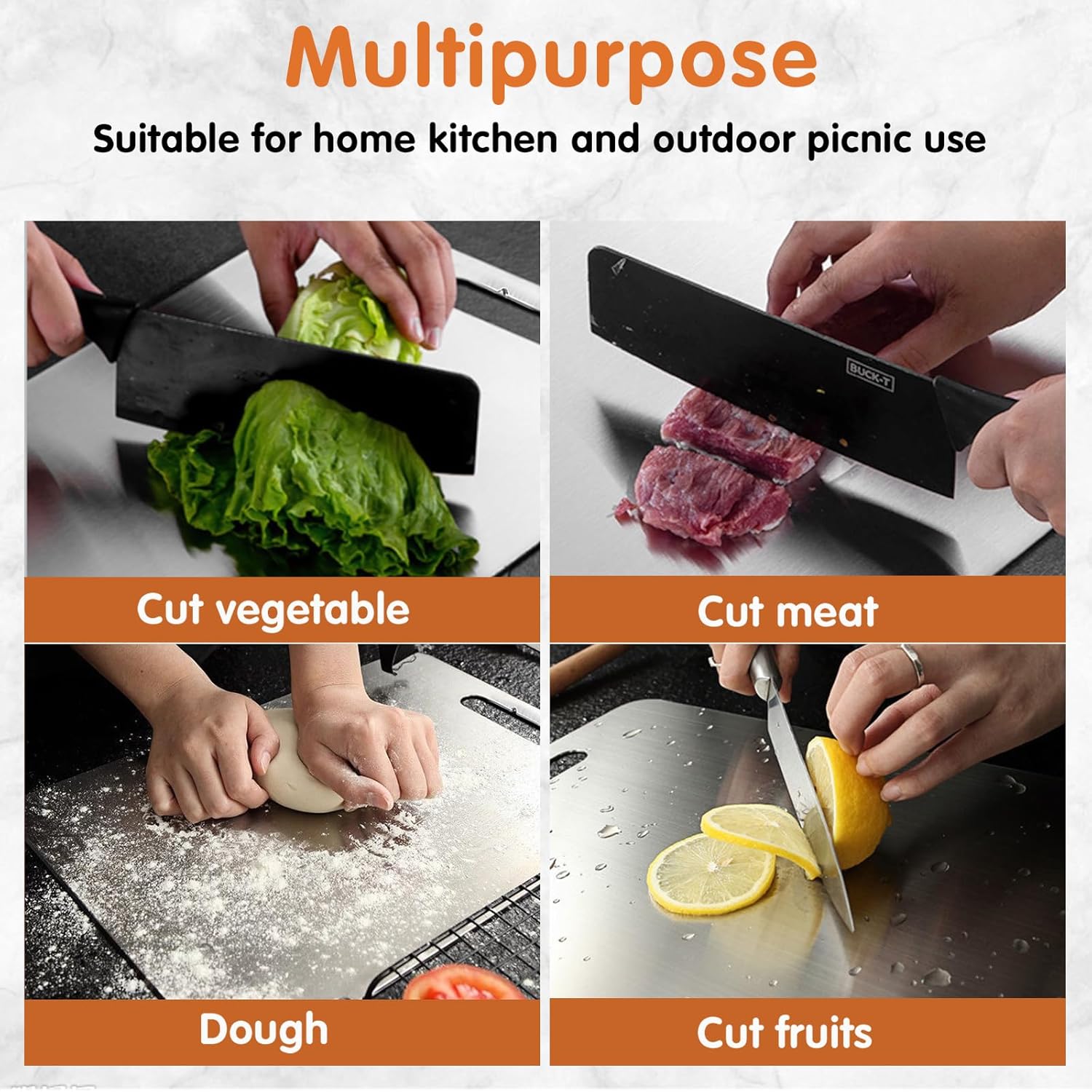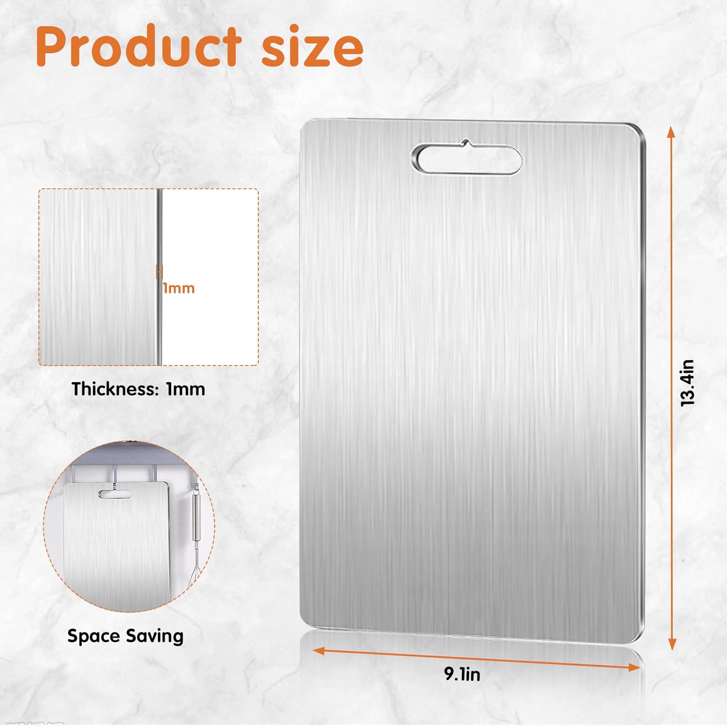 - 100% pure titanium material, completely get rid of the troubles of wooden/plastic cutting boards getting moldy and dirty