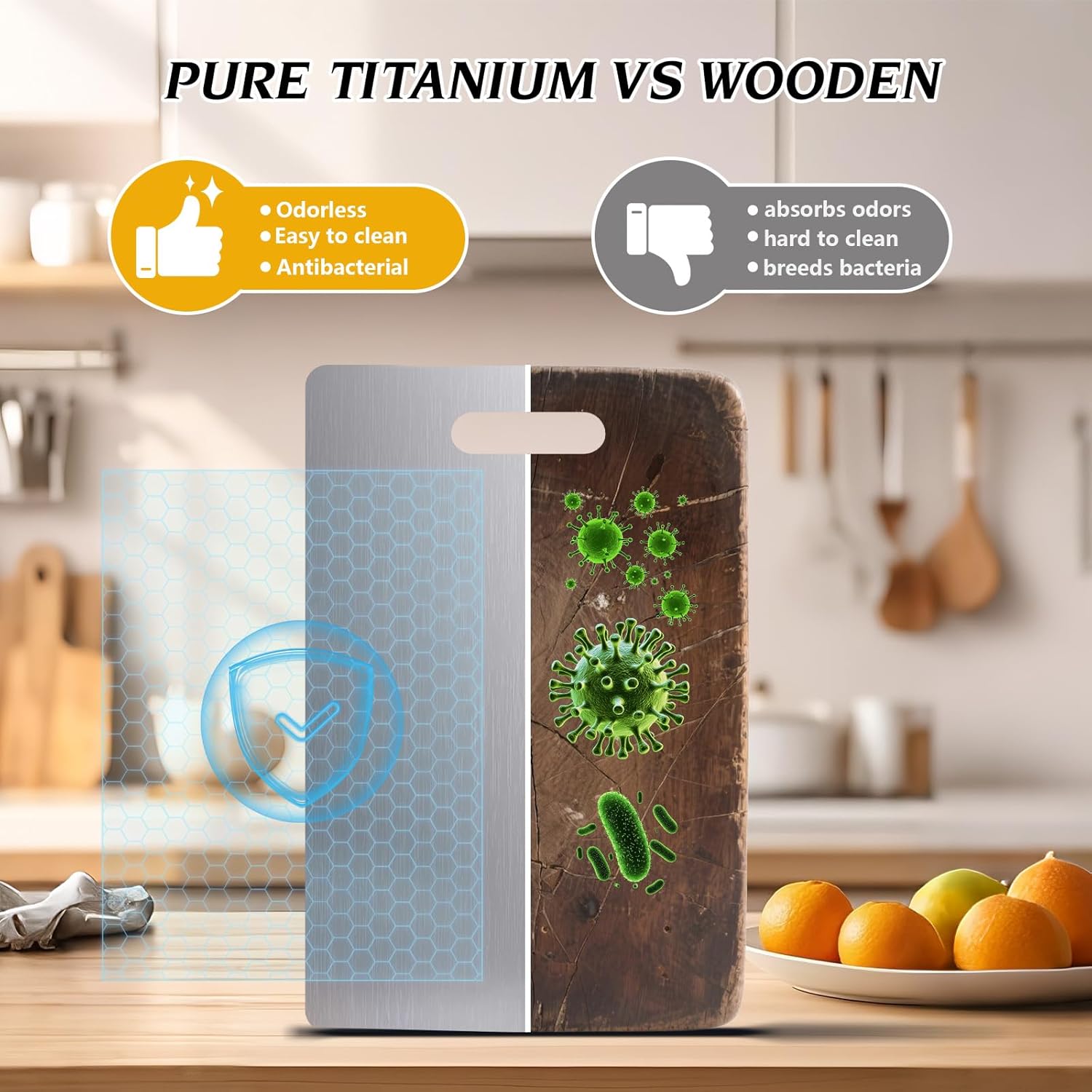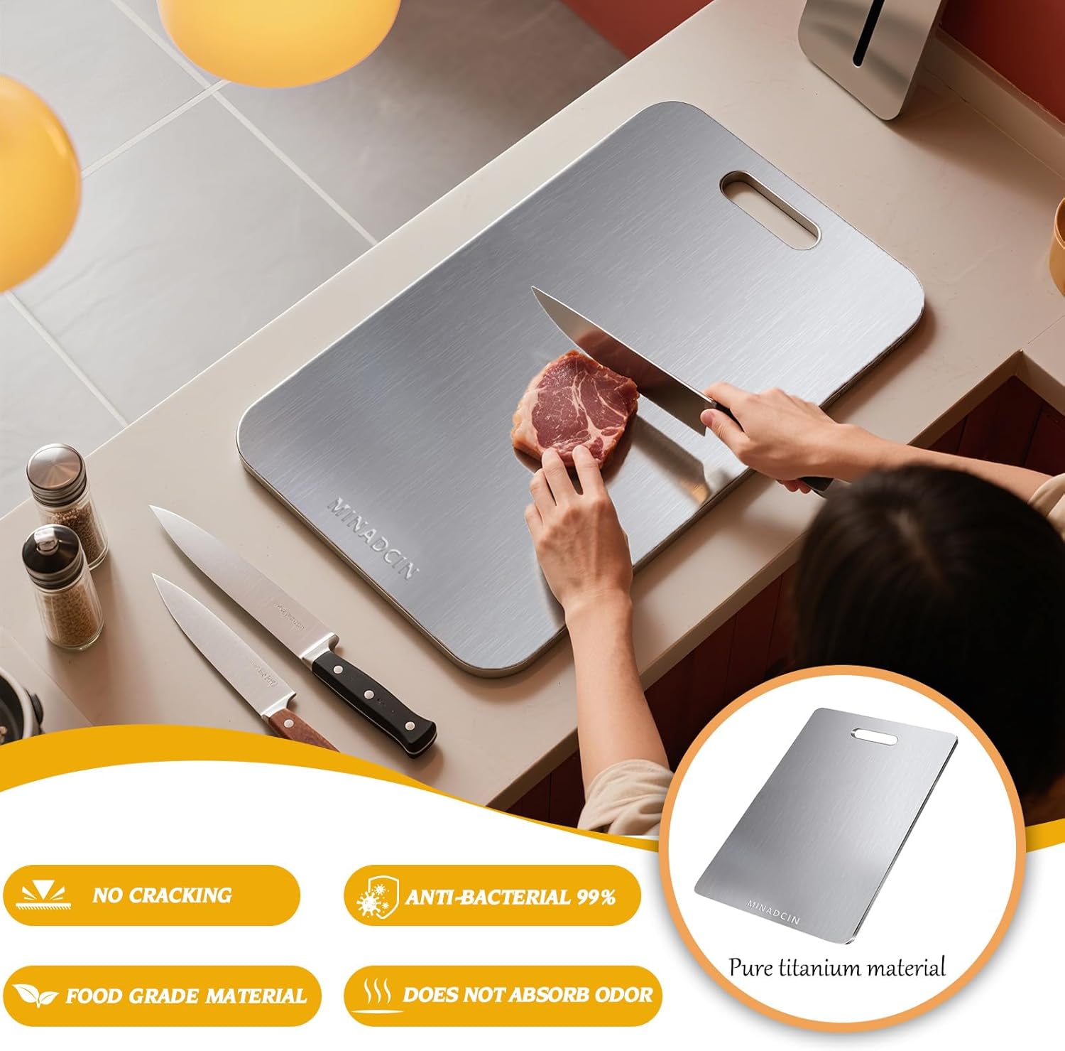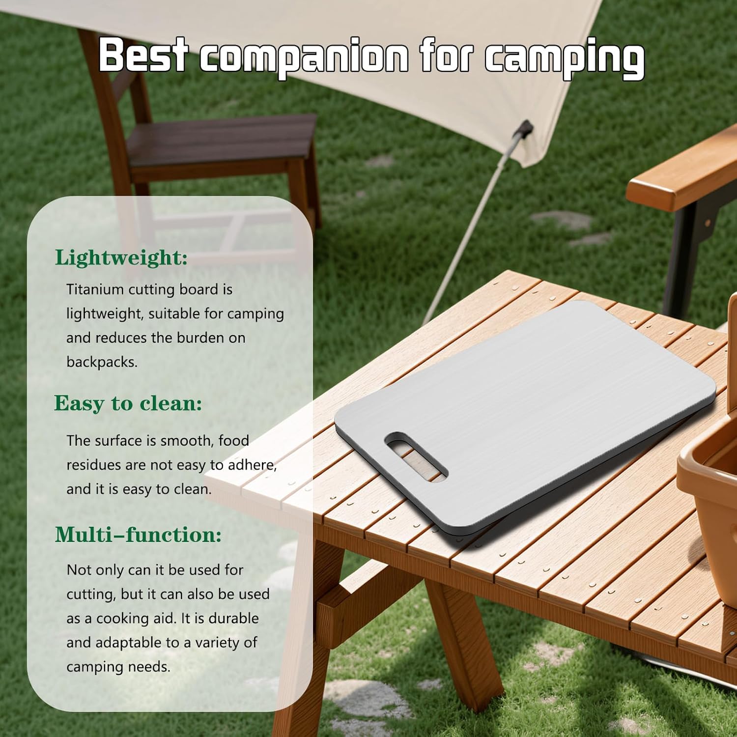 Perfect fit! Titanium cutting boards are lightweight (only 0.4-0.9kg) and corrosion-resistant, making outdoor dining safer in rainy and humid environments.