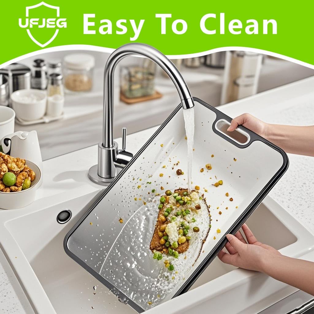 UFJEG Titanium Cutting Board for Kitchen, Cutting Board Double Sided Food Grade, Pure Titanium and Wheat Straw PP for Chopping Meat\/Vegetables, Dishwasher Safe Easy to Clean Large Size 15.5\u201D×11\u201D